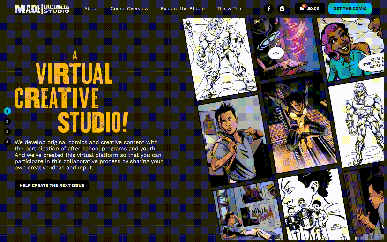Made Collaborative Studio represents a multifaceted project, encompassing functions such as uniting both the agency and creative youth, along with the sale of comics. Shortly before the project commenced, the client revamped the company’s identity. Initially, the task involved redesigning various internal pages to enhance website navigation.